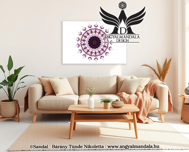 Különleges mandalám az ametiszt kristály energiáját szimbolizálja, mely a koronacsakrához kapcsolódik, és támogatja a belső béke, a tiszta gondolatok és az isteni útmutatás befogadását. A mandala finom rezgései segítenek ráhangolódni a magasabb dimenziók üzeneteire, megnyitva az utat az angyali vezetés és a csillagtestvérekkel való kommunikáció felé.