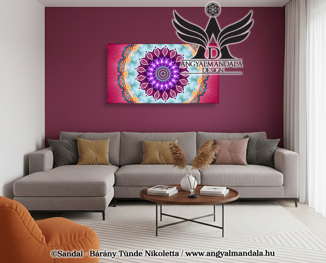 Kommunikáció és jókedv: A benne lévő türkiz és lila árnyalatok segítik oldani a kommunikációs problémákat, miközben a kép energiája jókedvet és felsábadultságot ad át neked.